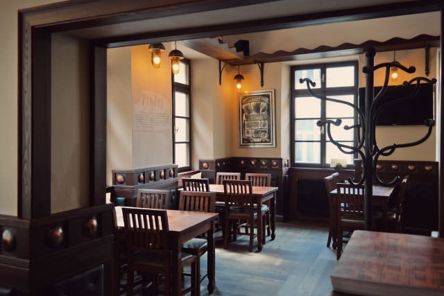 Стоит только открыть дверь, как вы сразу окажетесь во впечатляющей атмосфере старопражской пивоварни, подчеркиваемой настенными рисунками академических художников Йиржи Бернарда и Павла Якла. По ним можно познакомиться с богатой историей дома и пивоварения в Чехии.